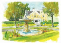Also available are poster reprints of Larry Howard’s painting of the fountain in front of the Marion Carter house.